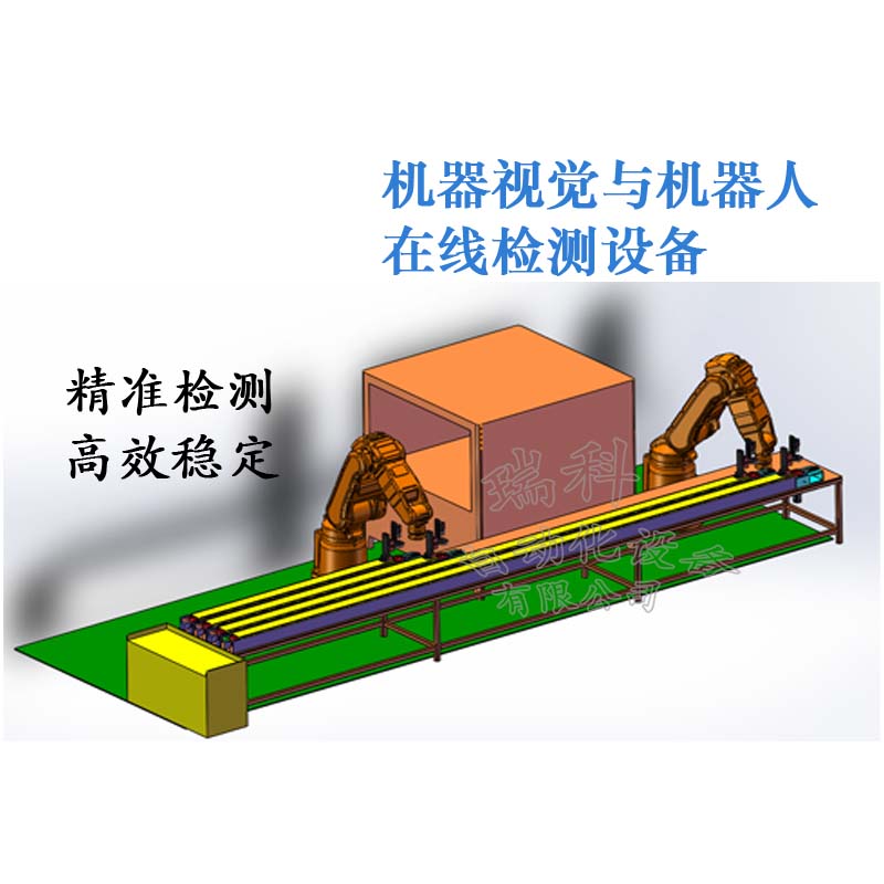 瑞科的機器視覺圖像處理系統與機器人組合即可在線對產品生產過程中產生的各種尺寸及表面問題進行高速、精準的檢測。