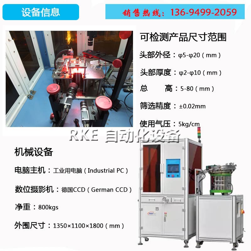 檢測產品的頭部直徑、多段高度、頭厚、牙外徑、垂直度、搓牙不良 |